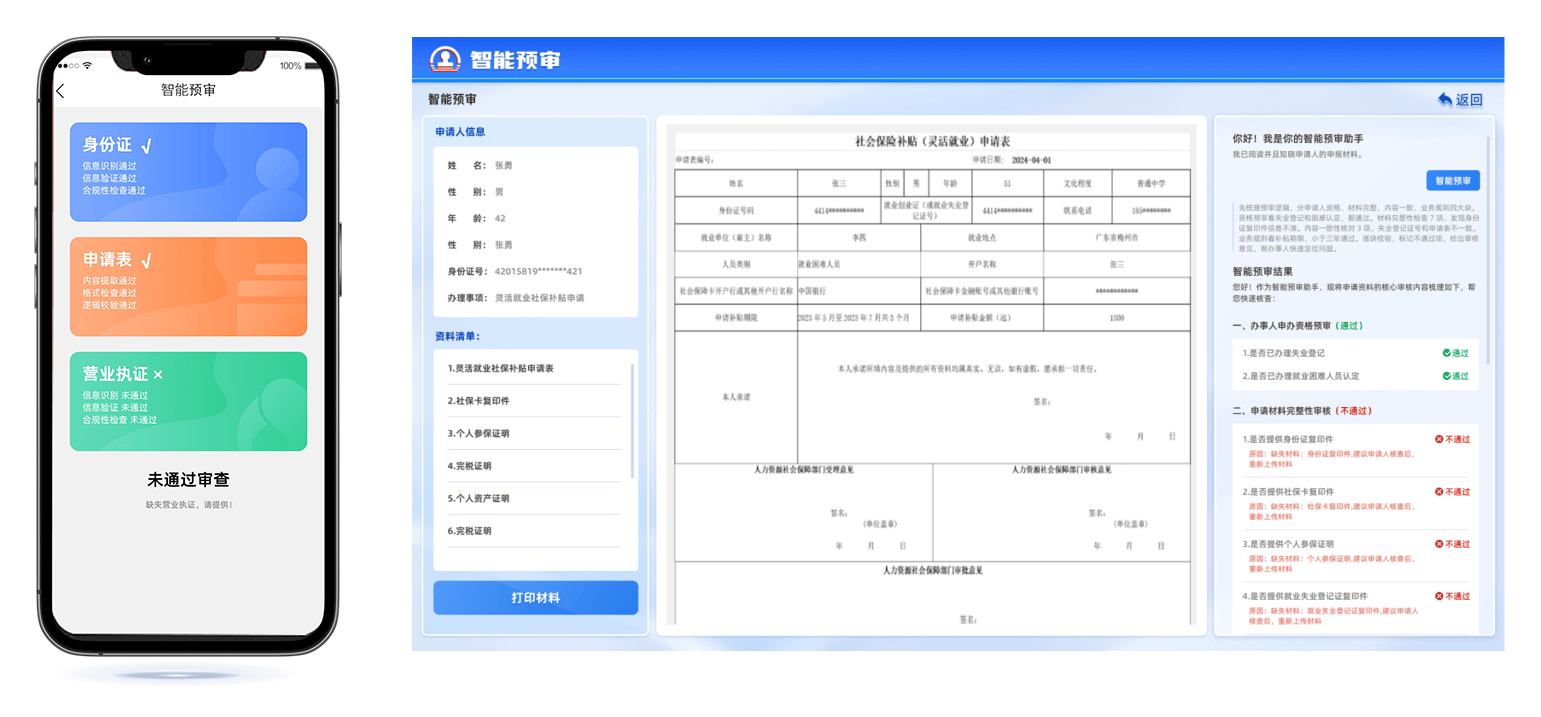 系统具备将审查成果取原始材料智能比对、定位的能力,可正在文件的具体进行可视化标注,让群众随时随地享受“指尖”的便当。为处事群众供给材料从动预检、智能纠错取补正提示,审批人员则可快速控制审查要点,成果通明可查。