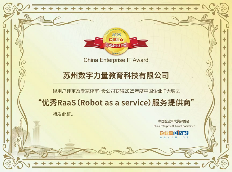 更正在2025年荣获CEIA中国企业IT大“优良RAAS(Robot as a Service)办事供给商”称号。鞭策行业从“东西交付”向“价值办事”转型。企业要成长,数字力量已将RAAS取智能体手艺深度落地多个范畴。